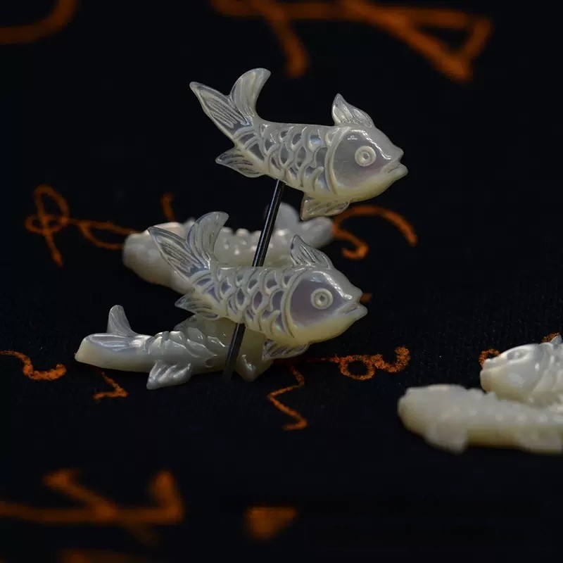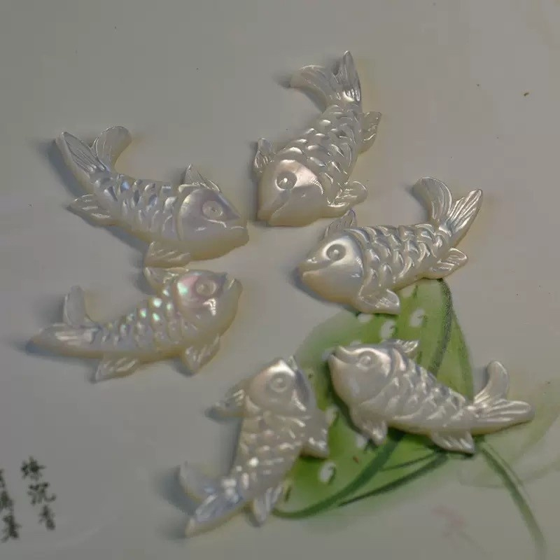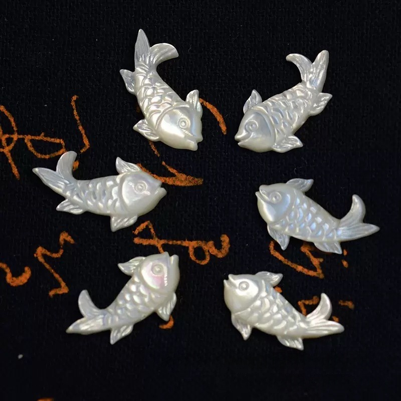 Home » Products » Embossment Image » Natural Mother of pearl carving fish shape pendant jewelry embossment cutting cute things fish handmade design for DIY