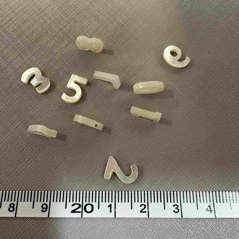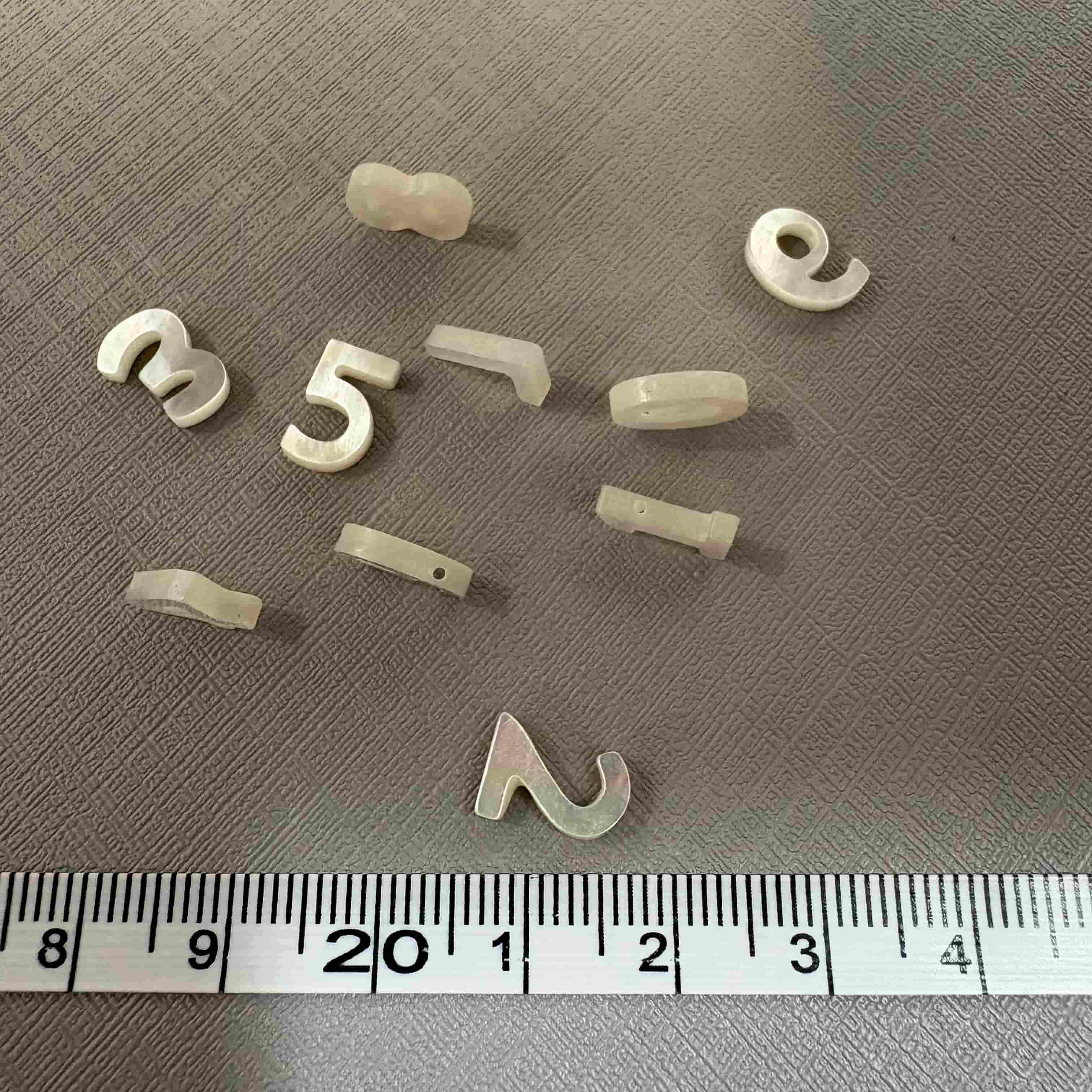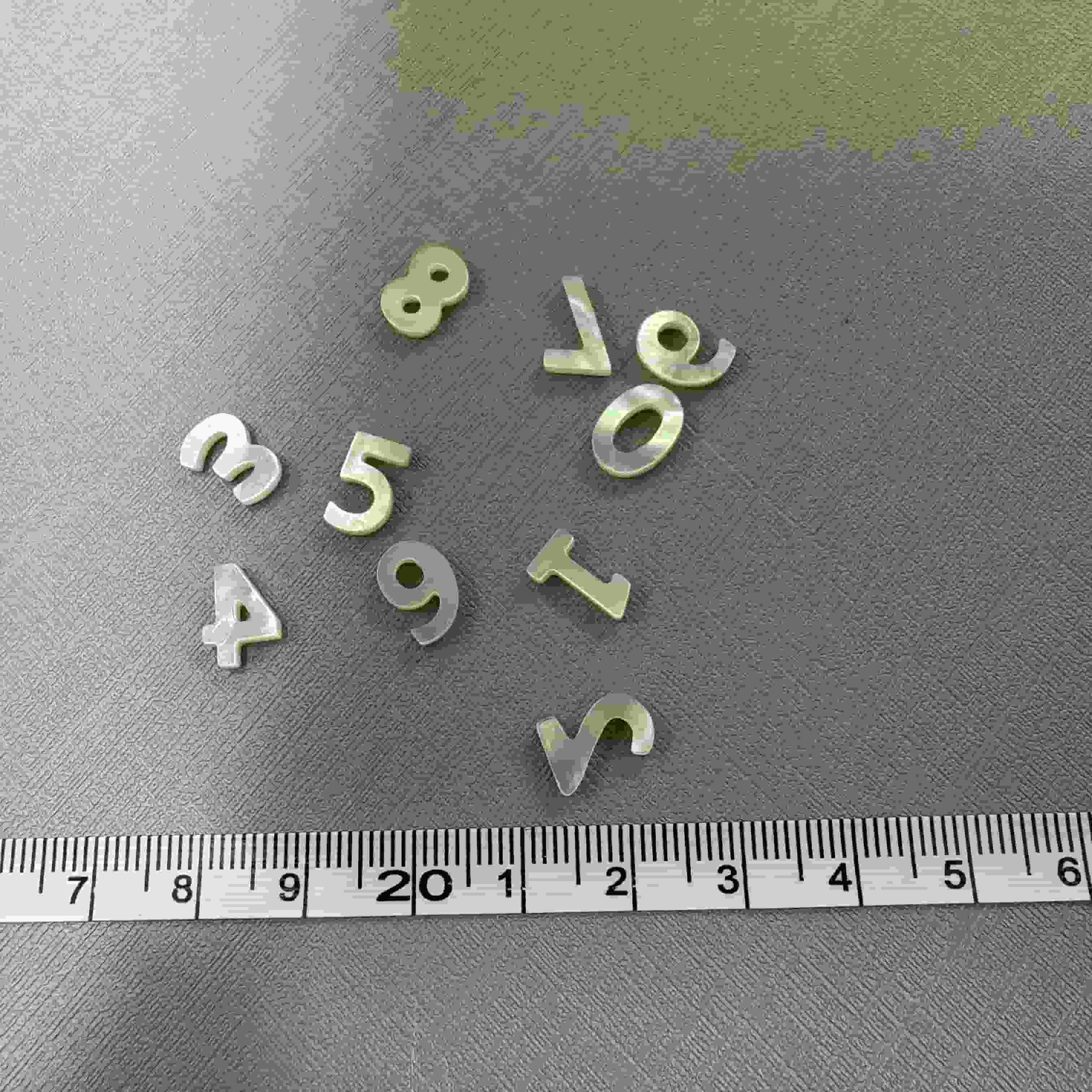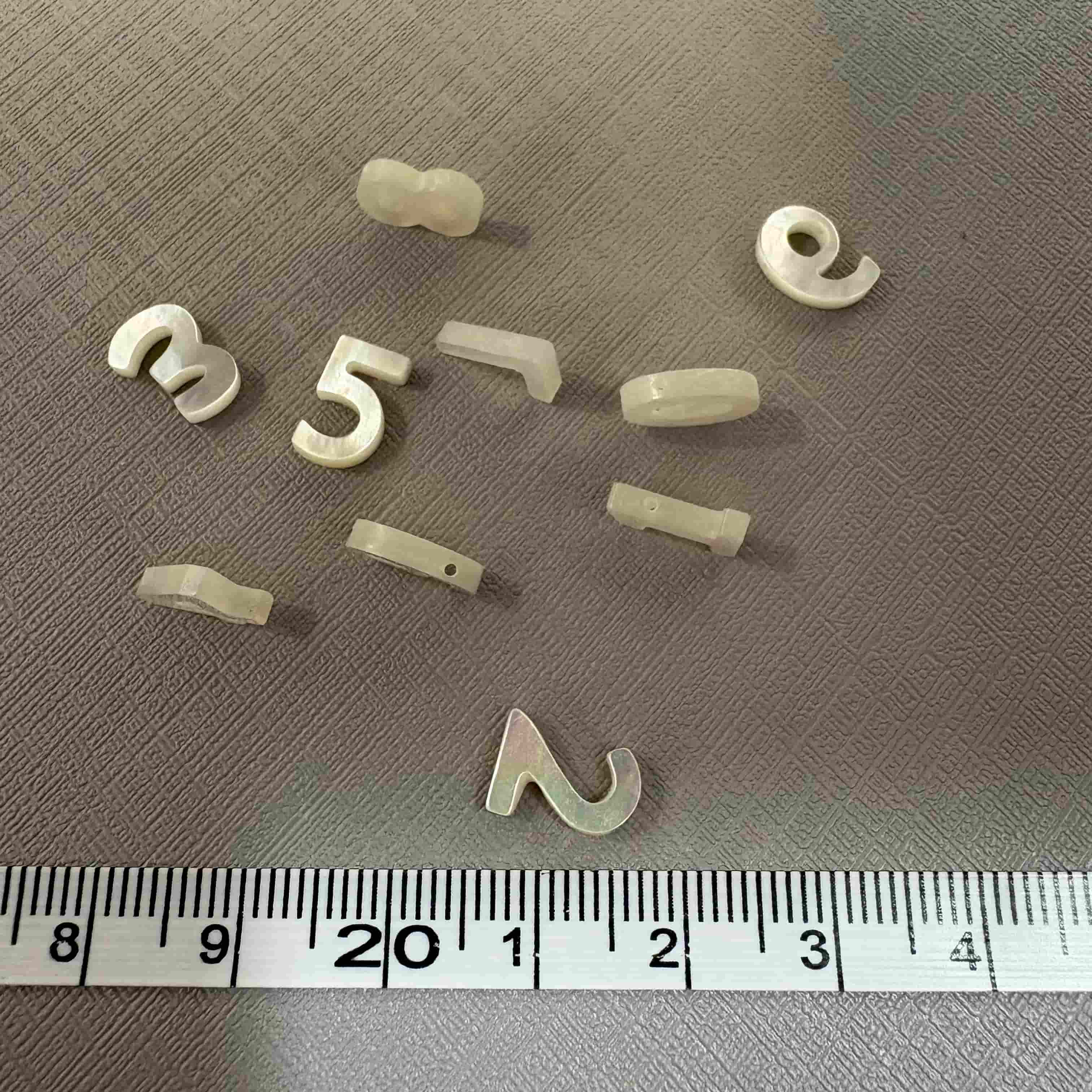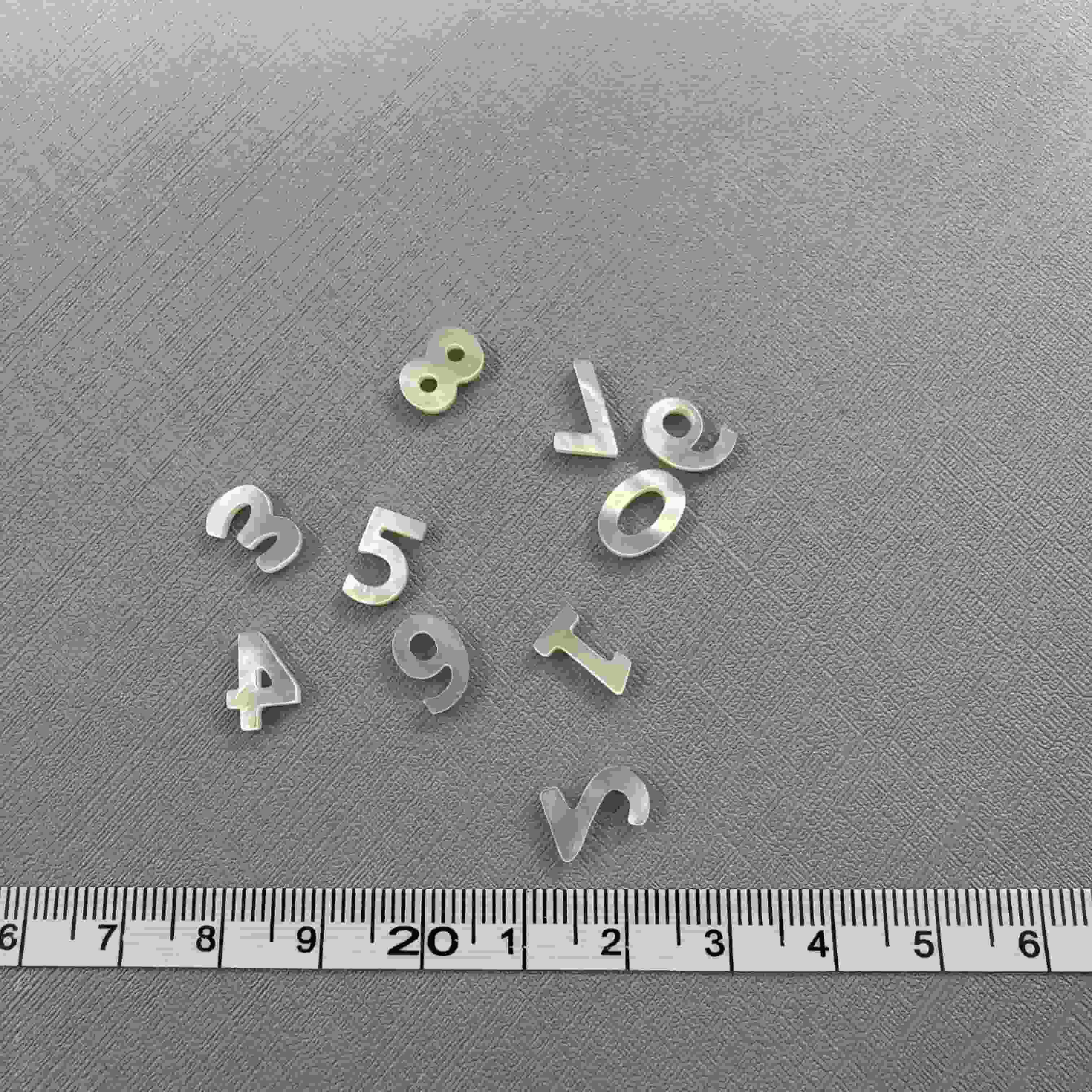 Home » Products » Cabochon » Natural Mother of pearl hollow design cutting number shape small parts for necklace making jewelry inlay DIY parts shell