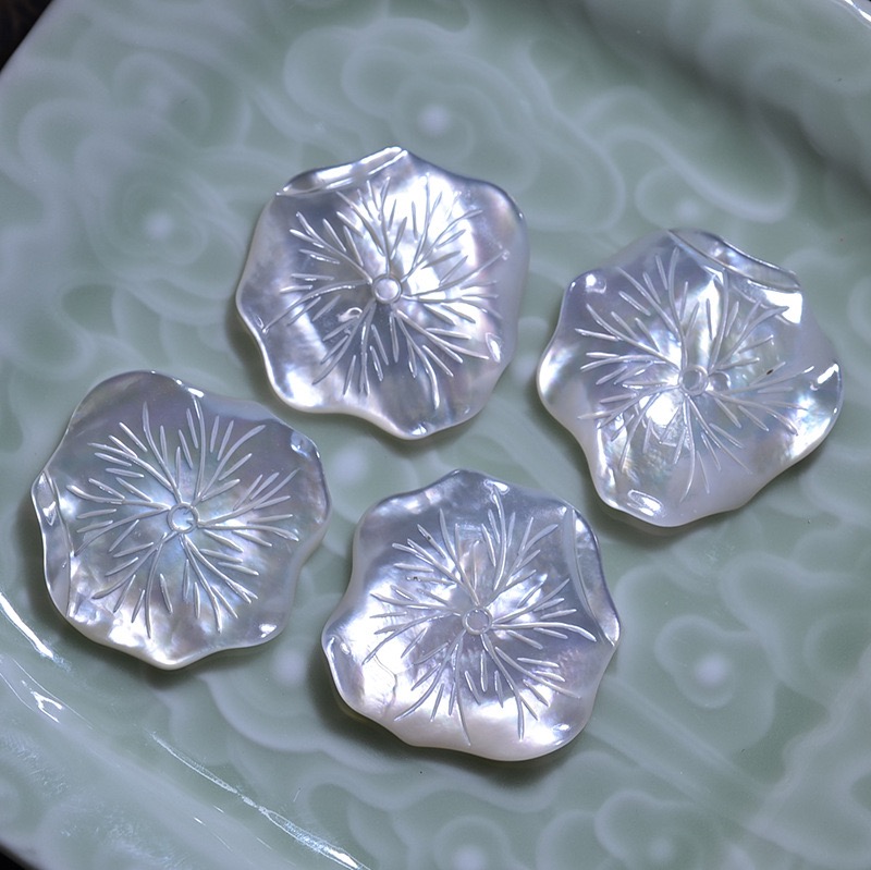Home » Products » Cabochon » Natural Mother of pearl lotus leaf shape carving white shell cabochon big size for pendant making jewelry design DIY flower