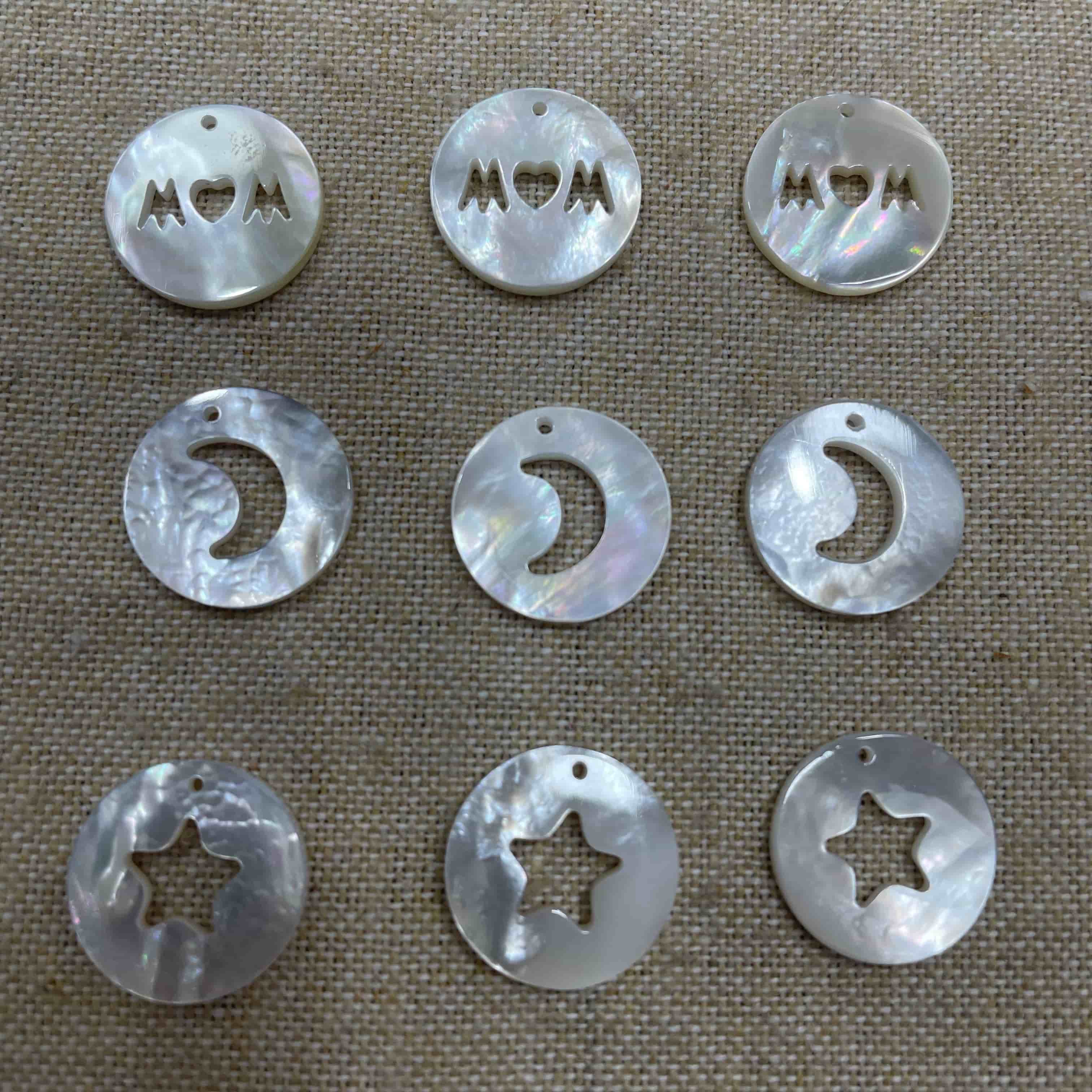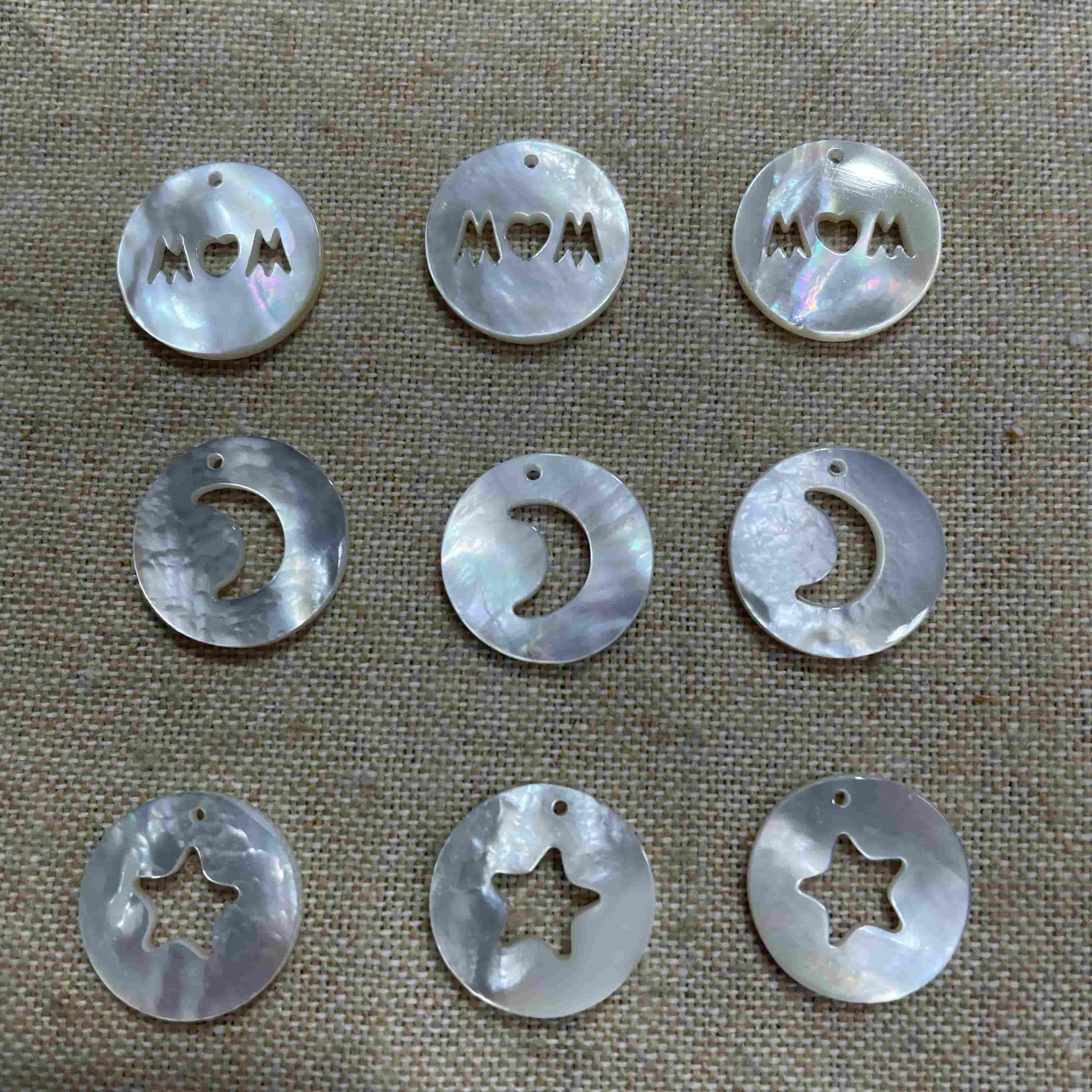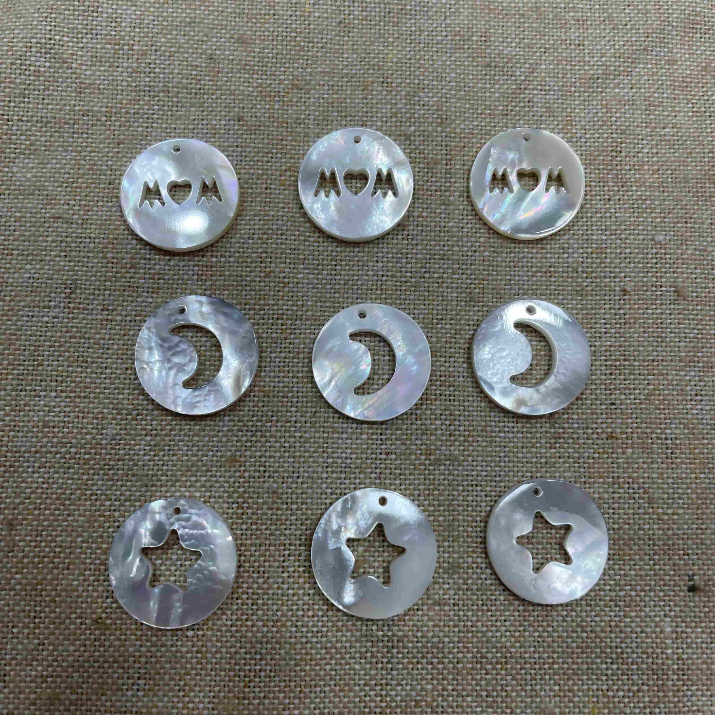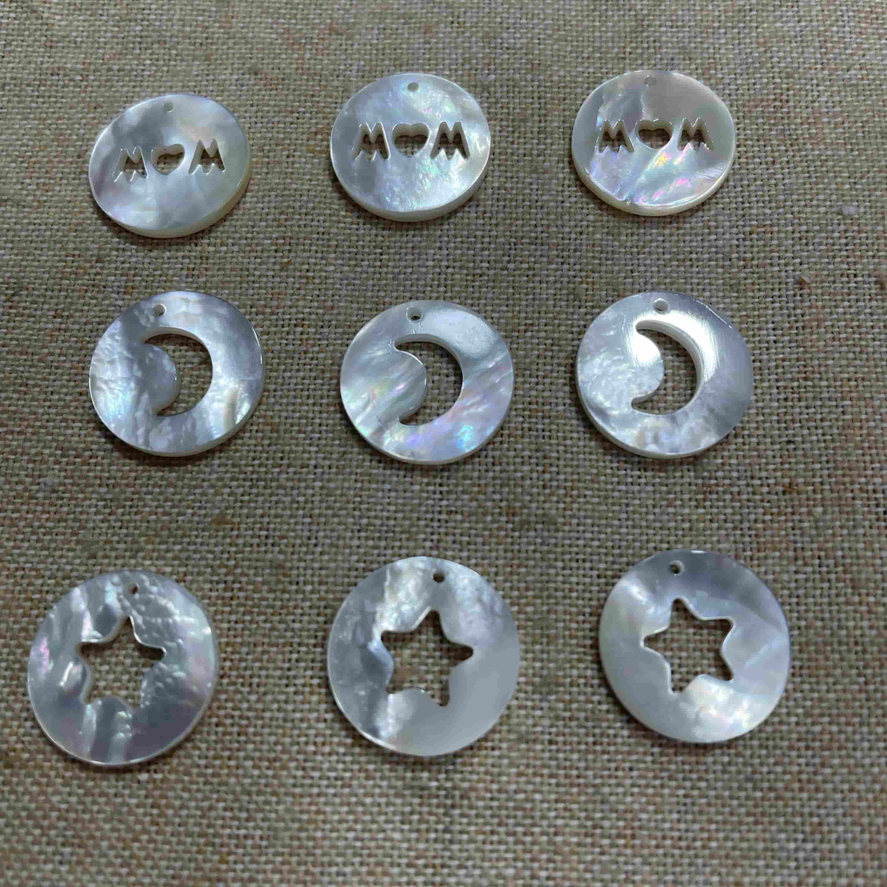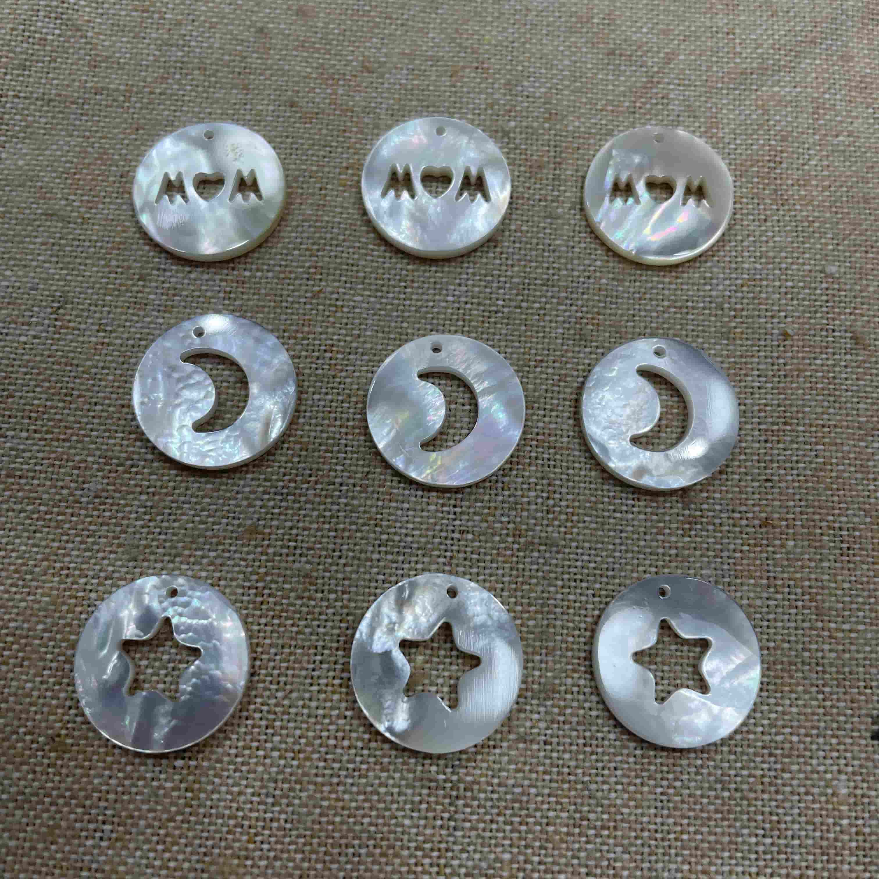 Home » Products » Hollow cutting » Natural Mother of pearl pendant design round shape cutting star heart pendant white shell jewelry inlay design making plain