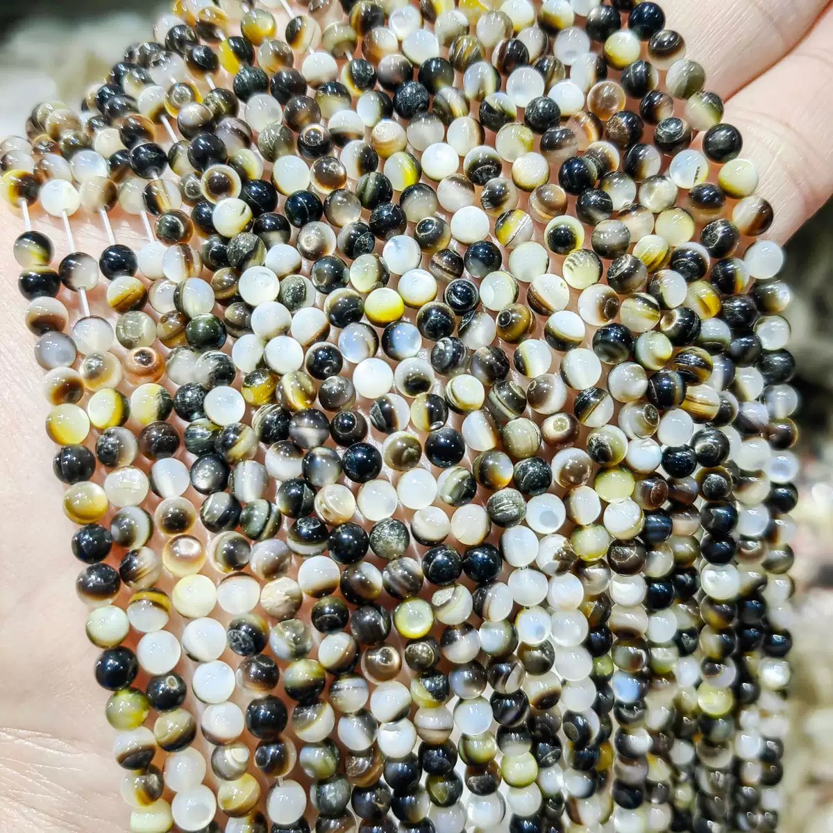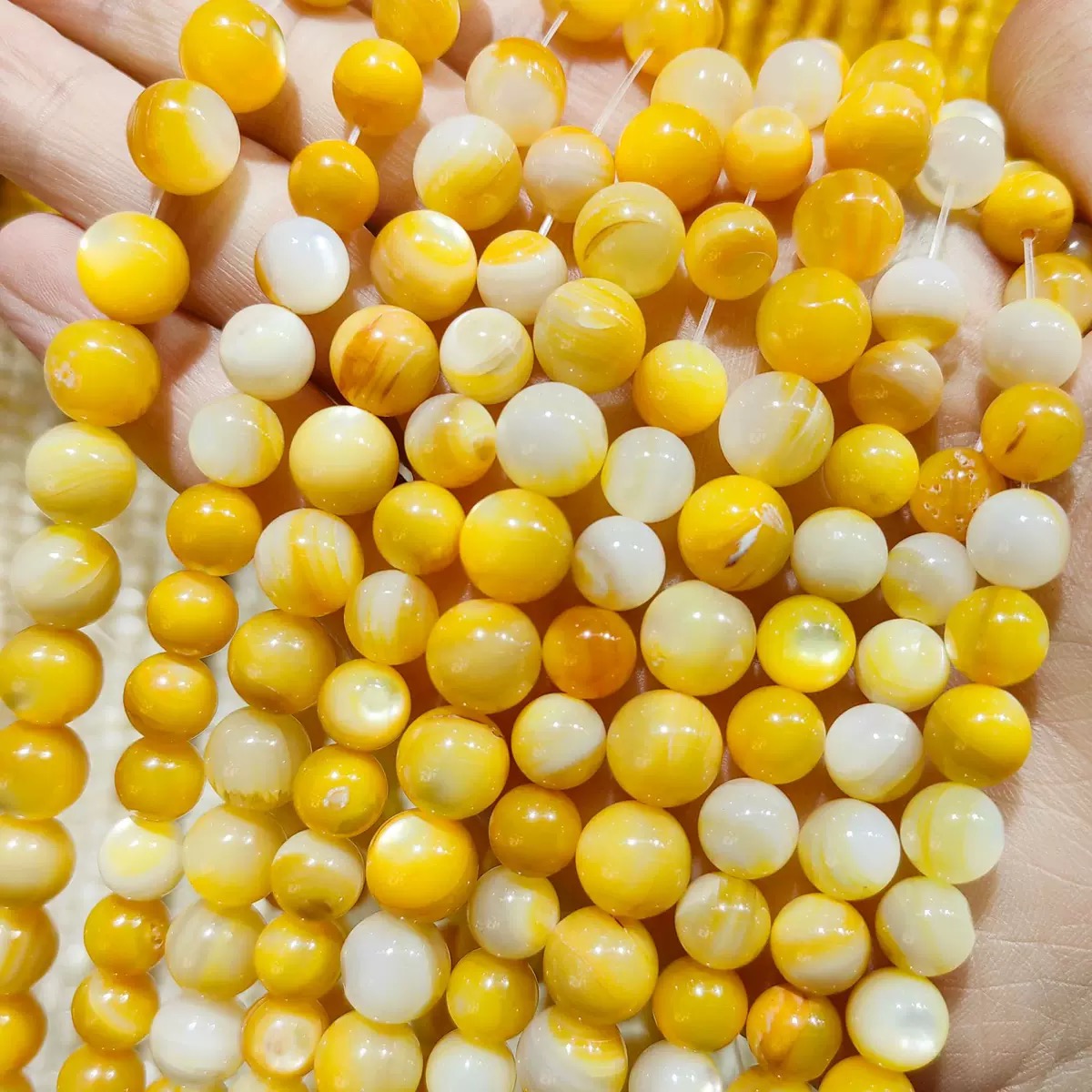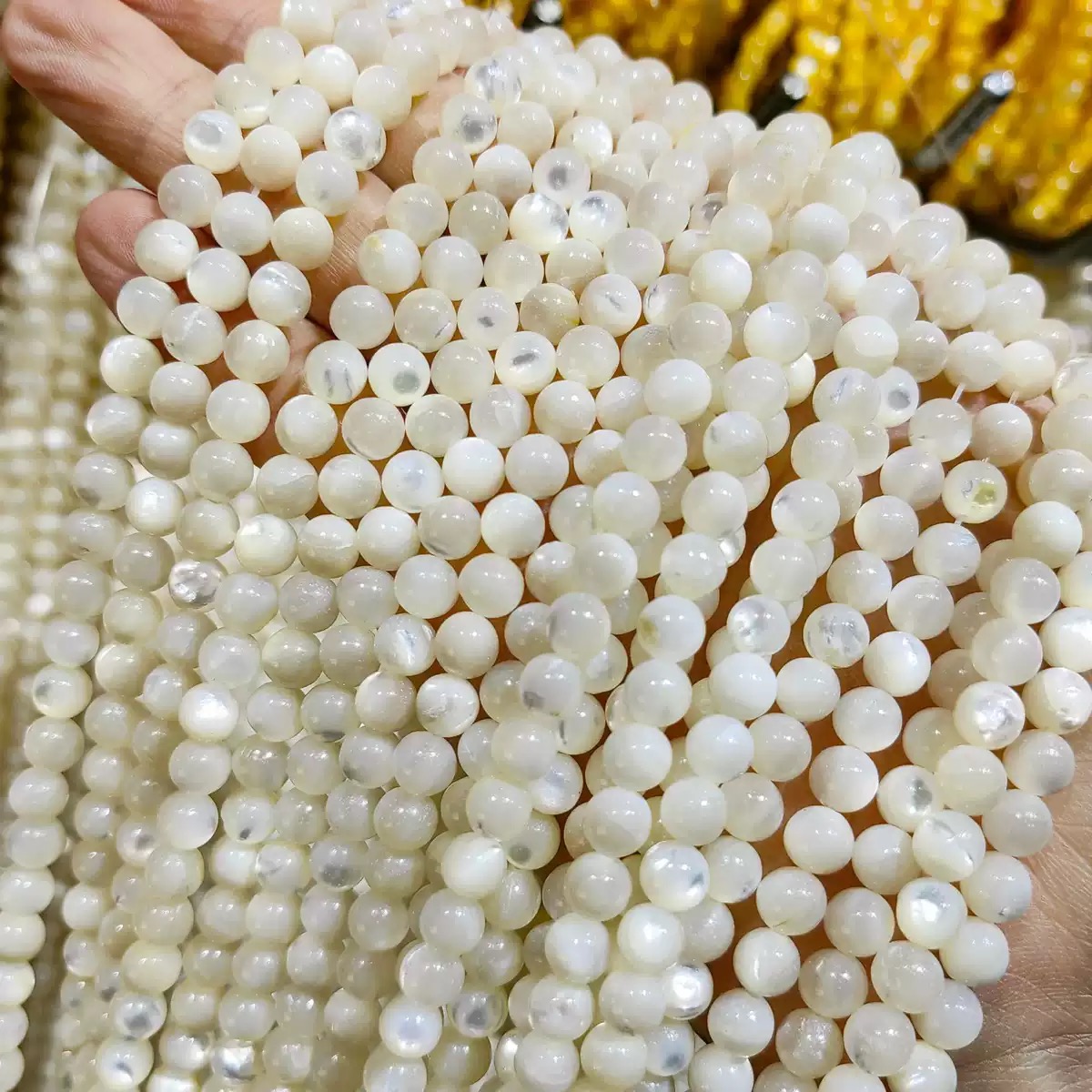 Home » Products » Embossment Image » Natural Mother of pearl round ball chain shell necklace design making small beans for bracelet making DIY yellow color black