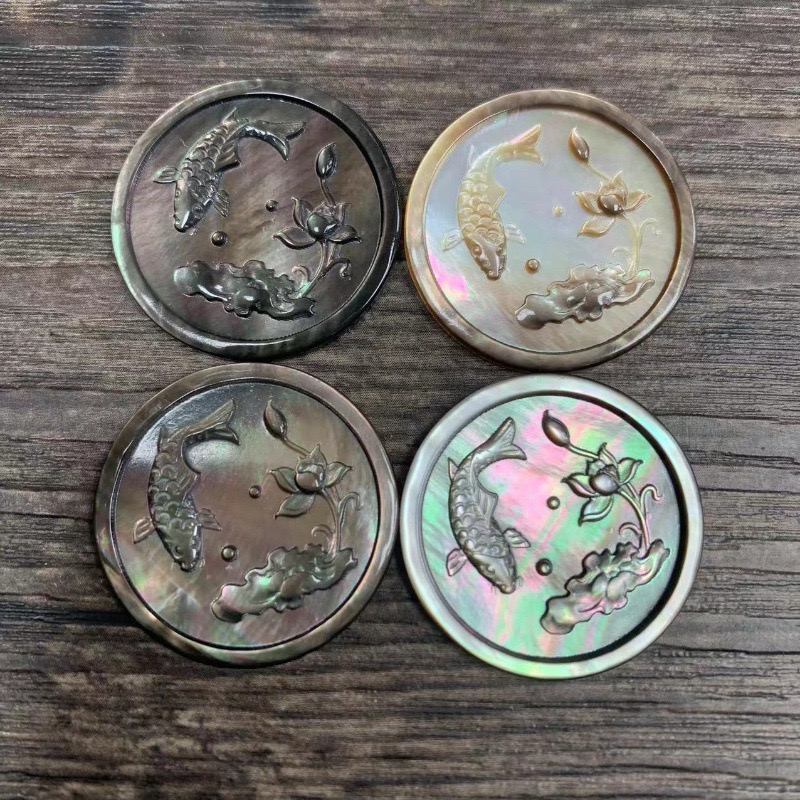 Home » Products » Carving Flower » Natural Mother of pearl round shape cameo design cutting jewelry icons animal design pendant black shell image mother of pearl