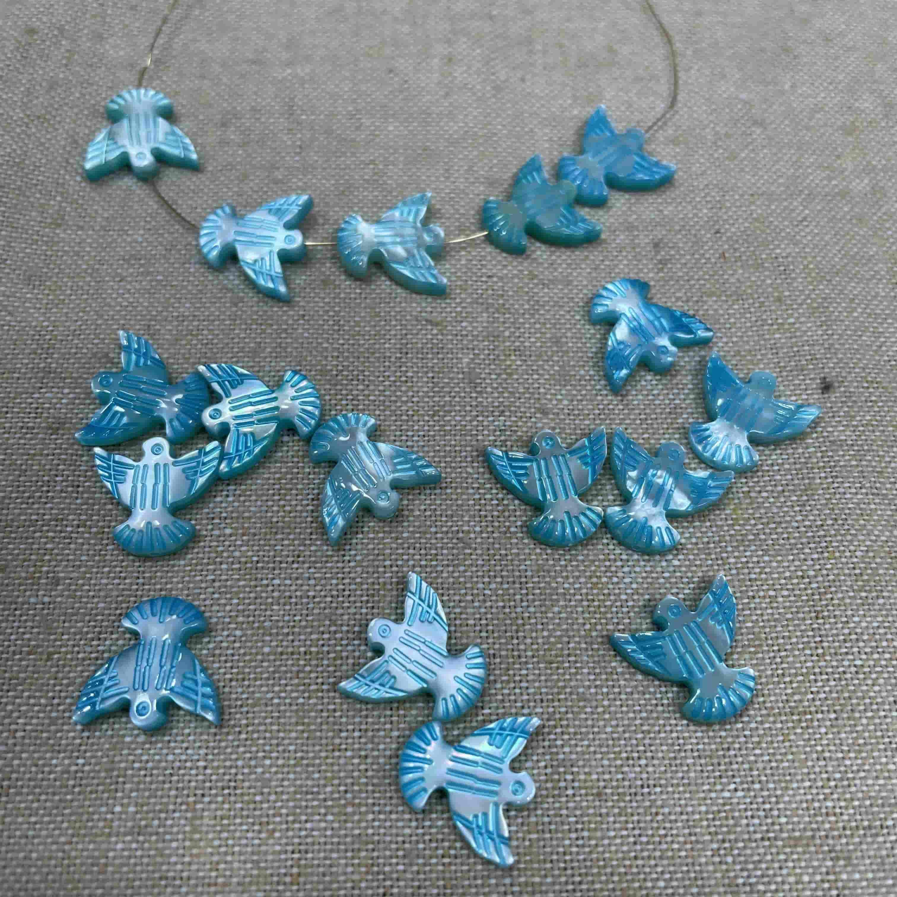 Natural Mother of pearl small beads dove shape the bird design cutting for jewelry making necklace design bracelet blue shell